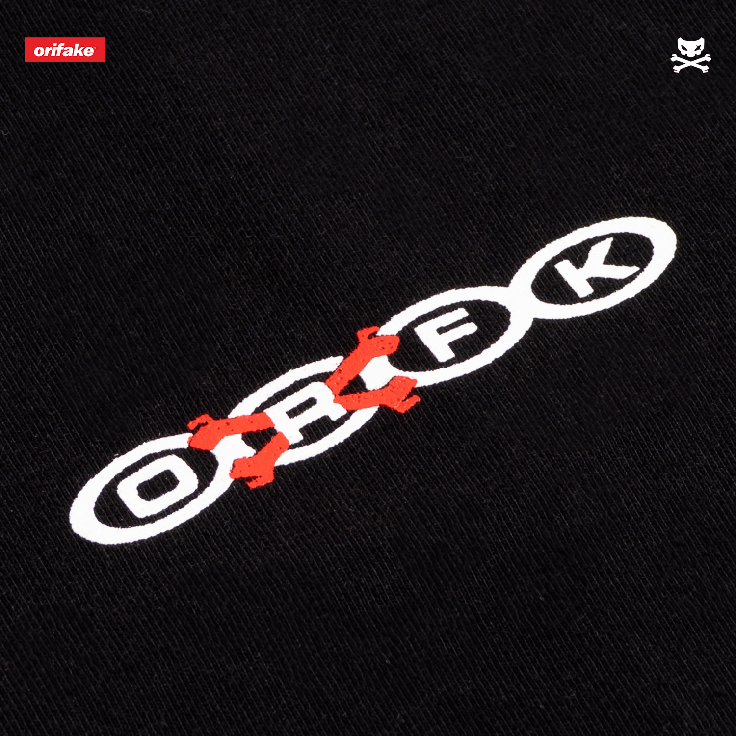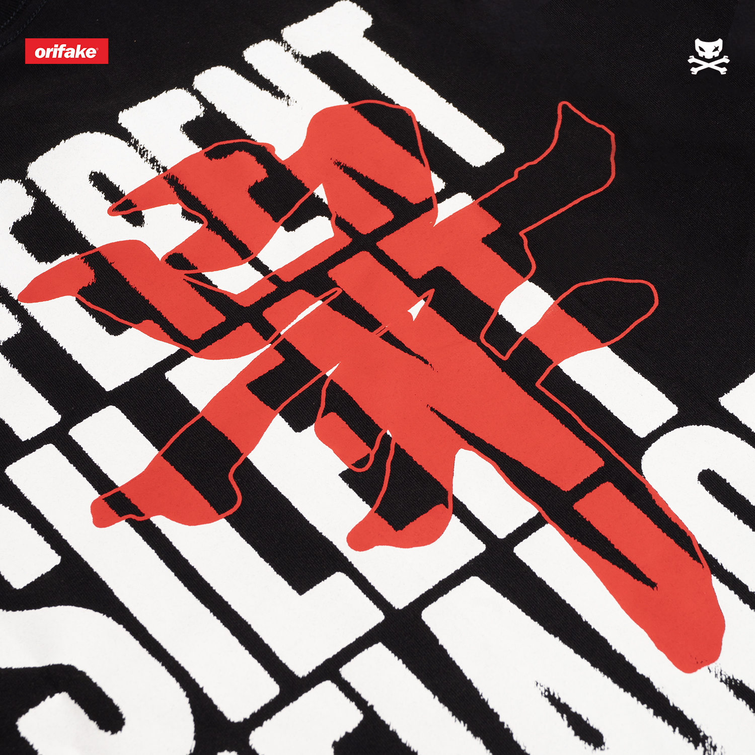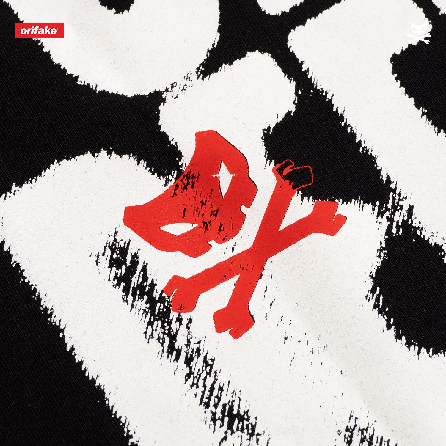 - Color: Black with white and red prints
