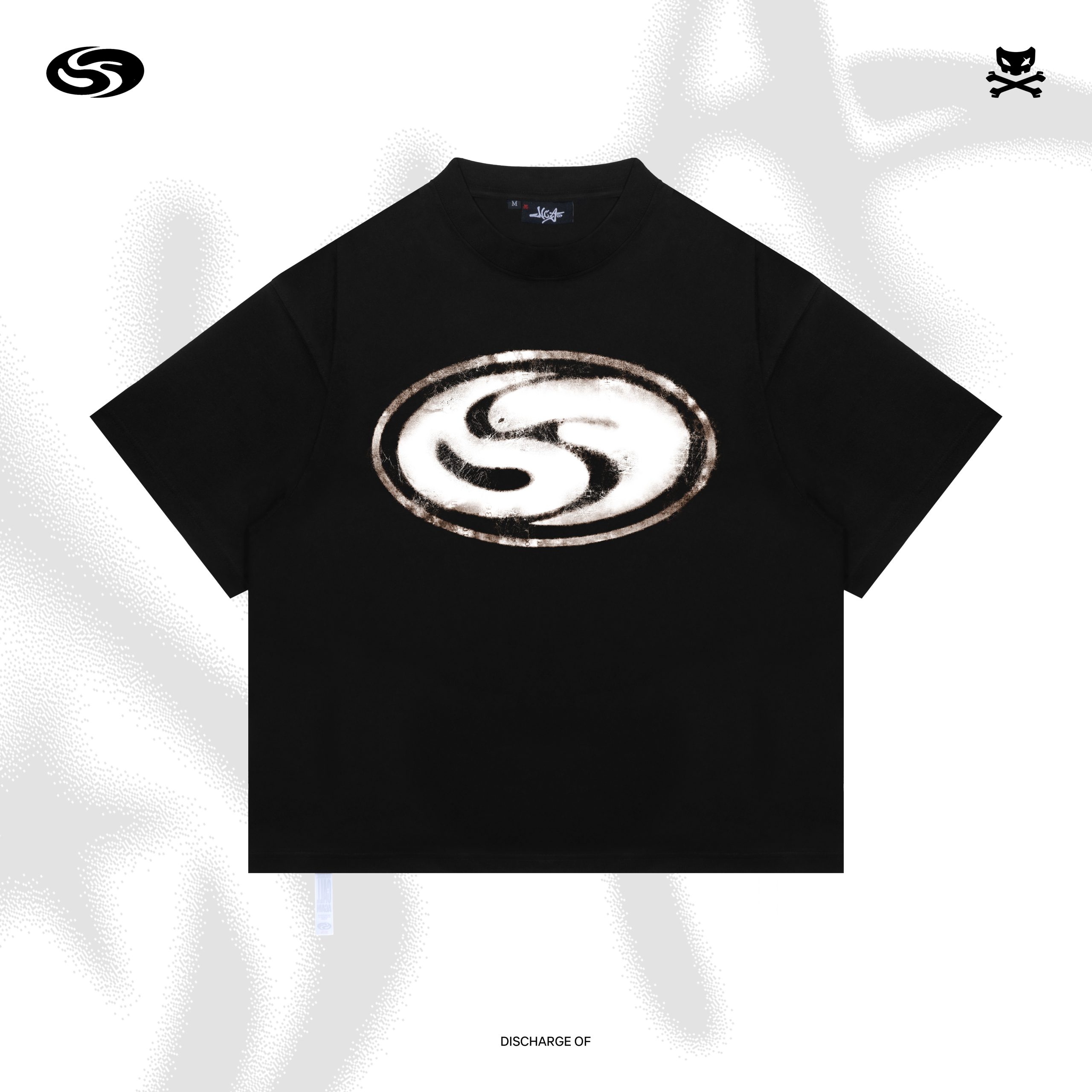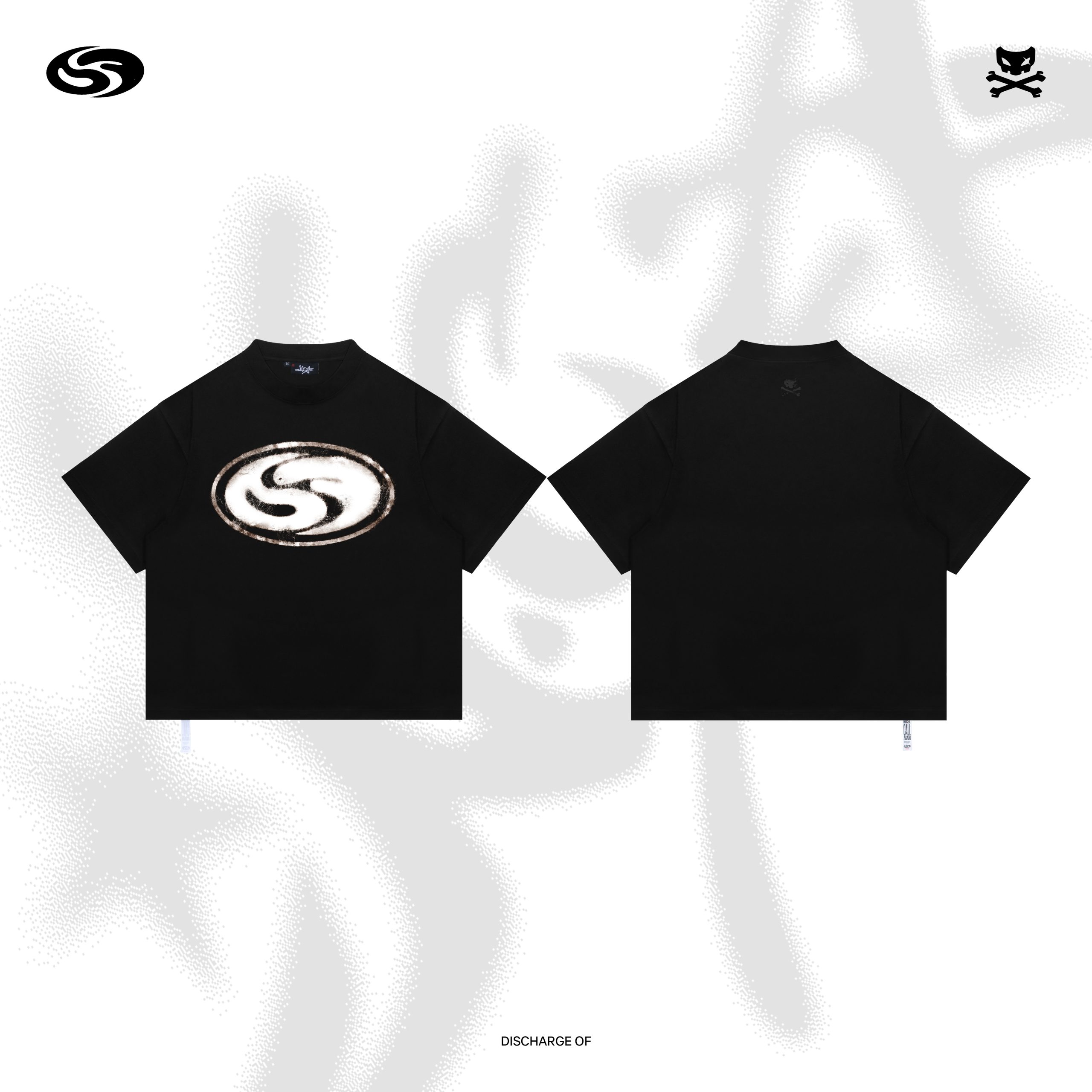 The Discharge Of T-shirt from the NCA Series by ORIFAKE delivers a bold yet minimal statement through its raw, experimental aesthetic. Crafted in deep black, this piece features a distinctive ditter/xerox-style graphic on the front, giving a textured, almost analog feel that reflects underground and nonconformist design influences.
